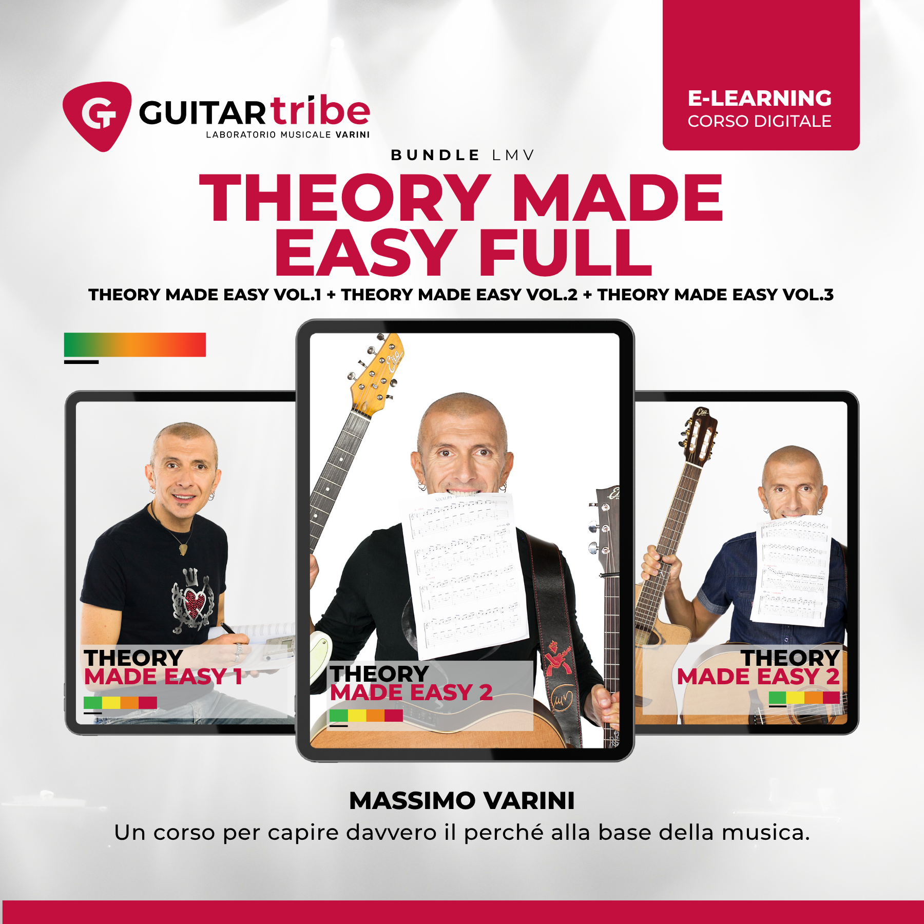 • Theory Made Easy Vol. 1 — Le fondamenta: lettura dello spartito, solfeggio, ritmo e prime basi di ear training.